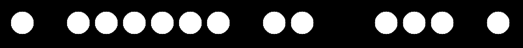 The demo will encode current clock value into binary form and render the bits to screen (circle = bit is on):